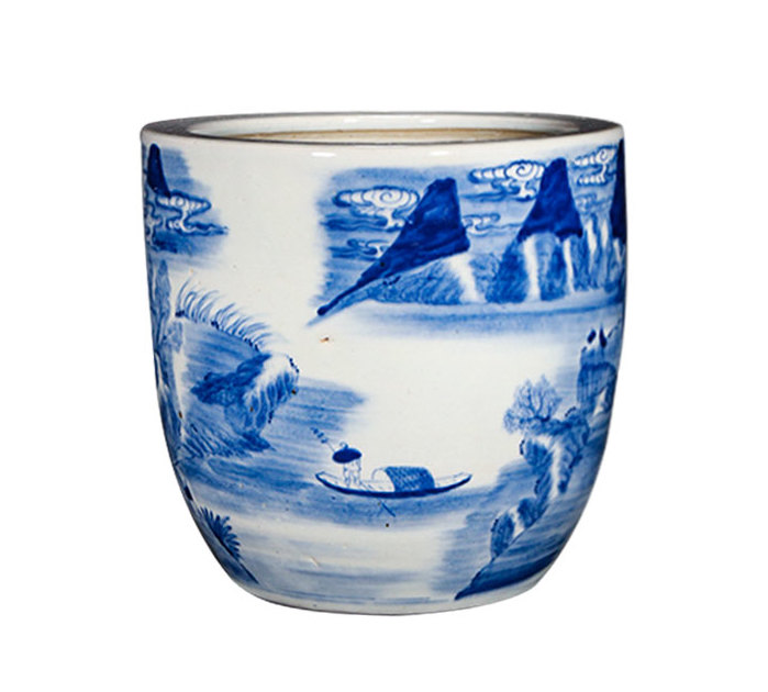 清康熙 青花通景山水图缸