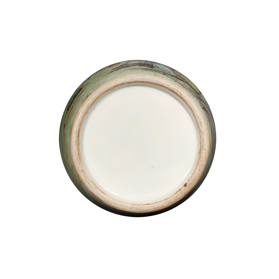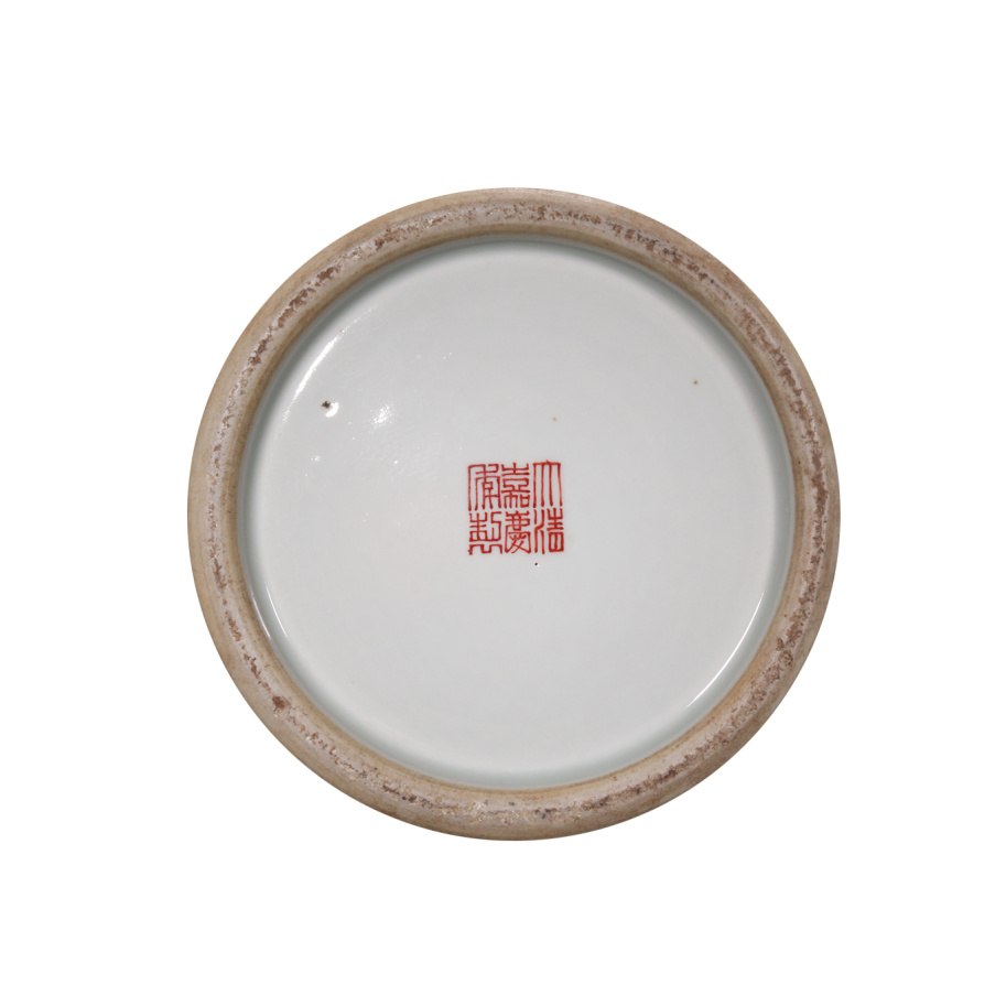 粉彩是清代创制的一种釉上彩绘瓷器品种,是在康熙晚期五彩瓷器的基础上,通过改进传统彩料配方,使用新的绘画技巧,借鉴珐琅彩瓷的艺术风格而创烧成功的,其艺术表现效果与五彩相比大为提升。而清代瓷器工艺在历经康、雍、乾盛世之后,已逐渐走向衰落,但在光绪朝又一度出现繁荣,尤其是粉彩器的生产,几乎可与乾隆粉彩比肩,瓷器史上称之为“光绪中兴”。本器即是清光绪粉彩瓷的精品,纹饰生动逼真,色彩清丽娇美,是清晚期制瓷的代表器物。