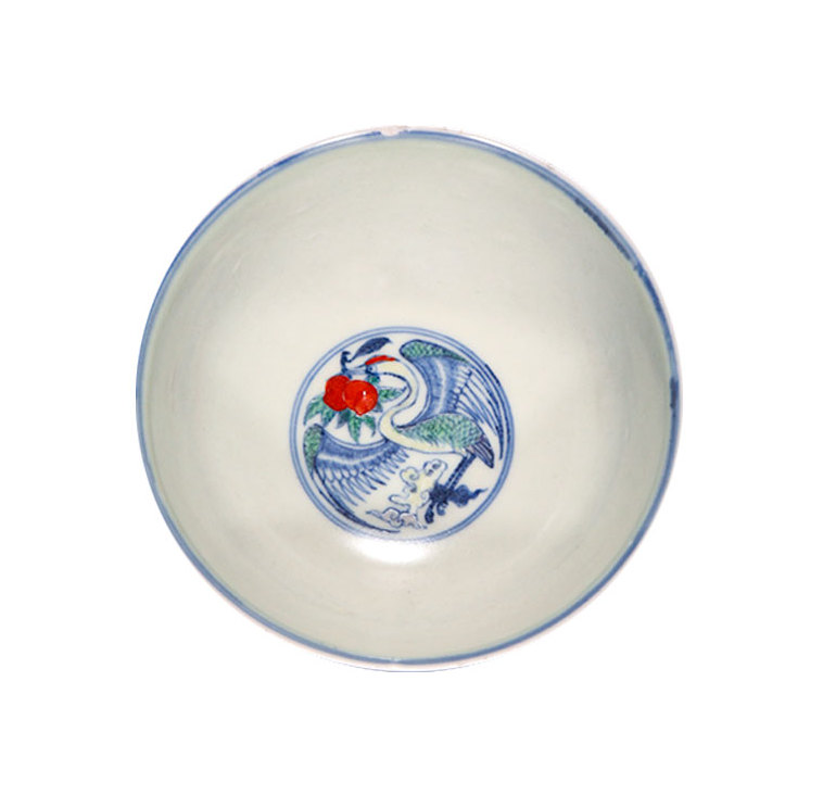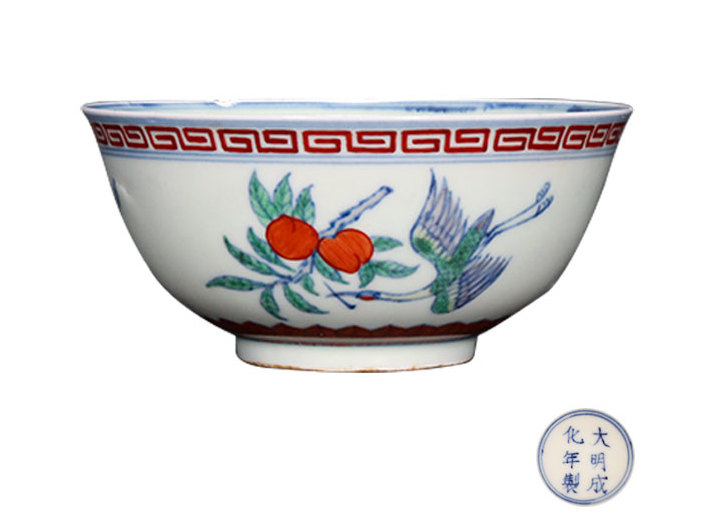 明成化 斗彩仙鹤蟠桃图碗
