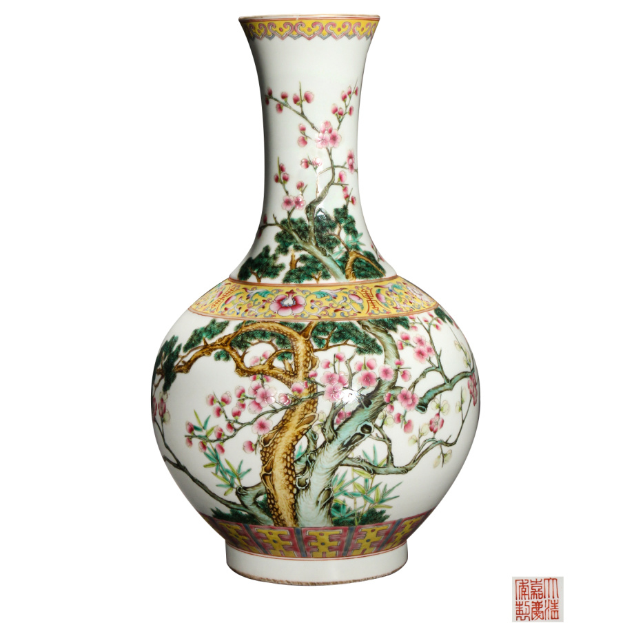 清嘉庆 粉彩松竹梅赏瓶
