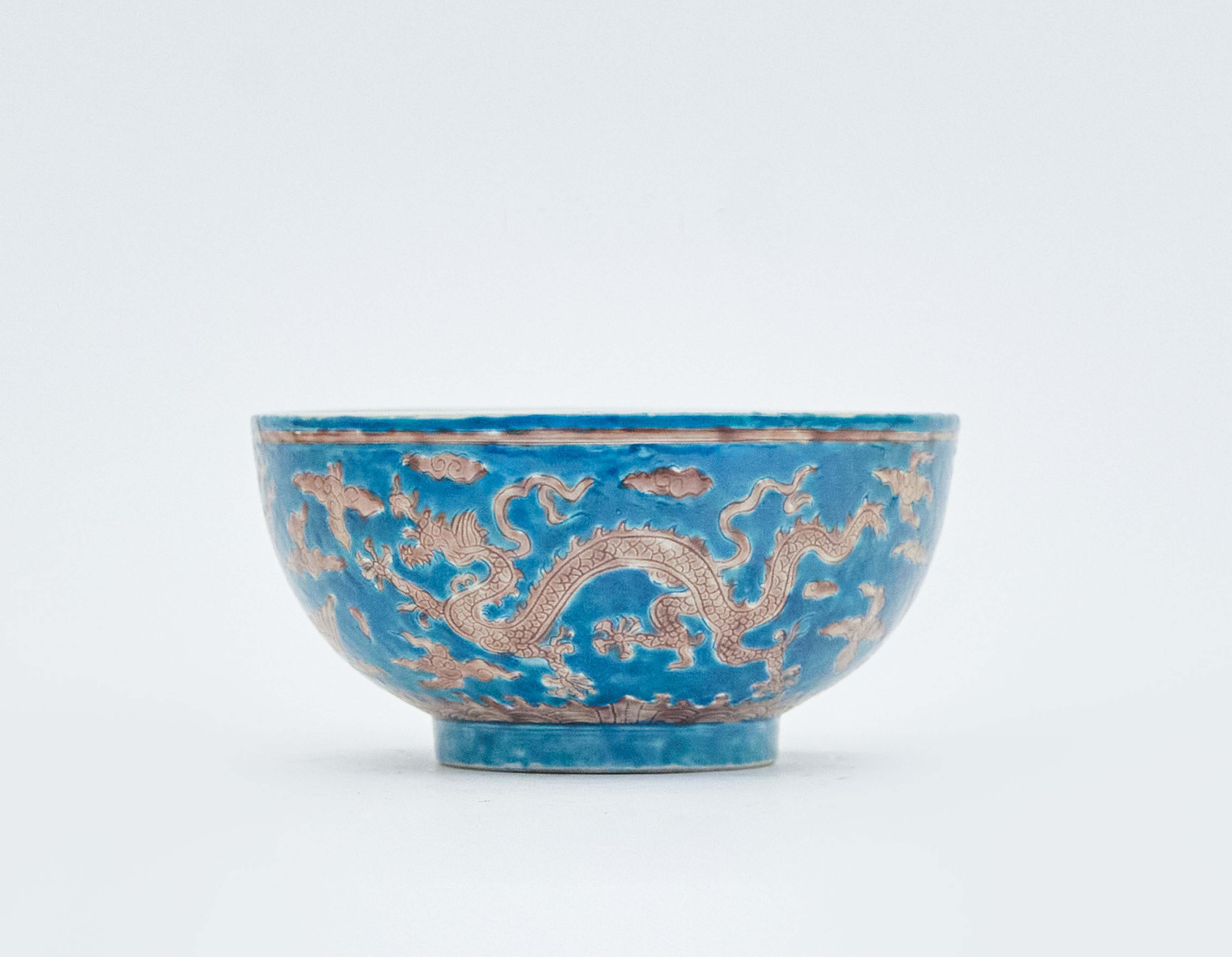 Lot1659 明嘉靖 蓝地珐琅龙凤碗