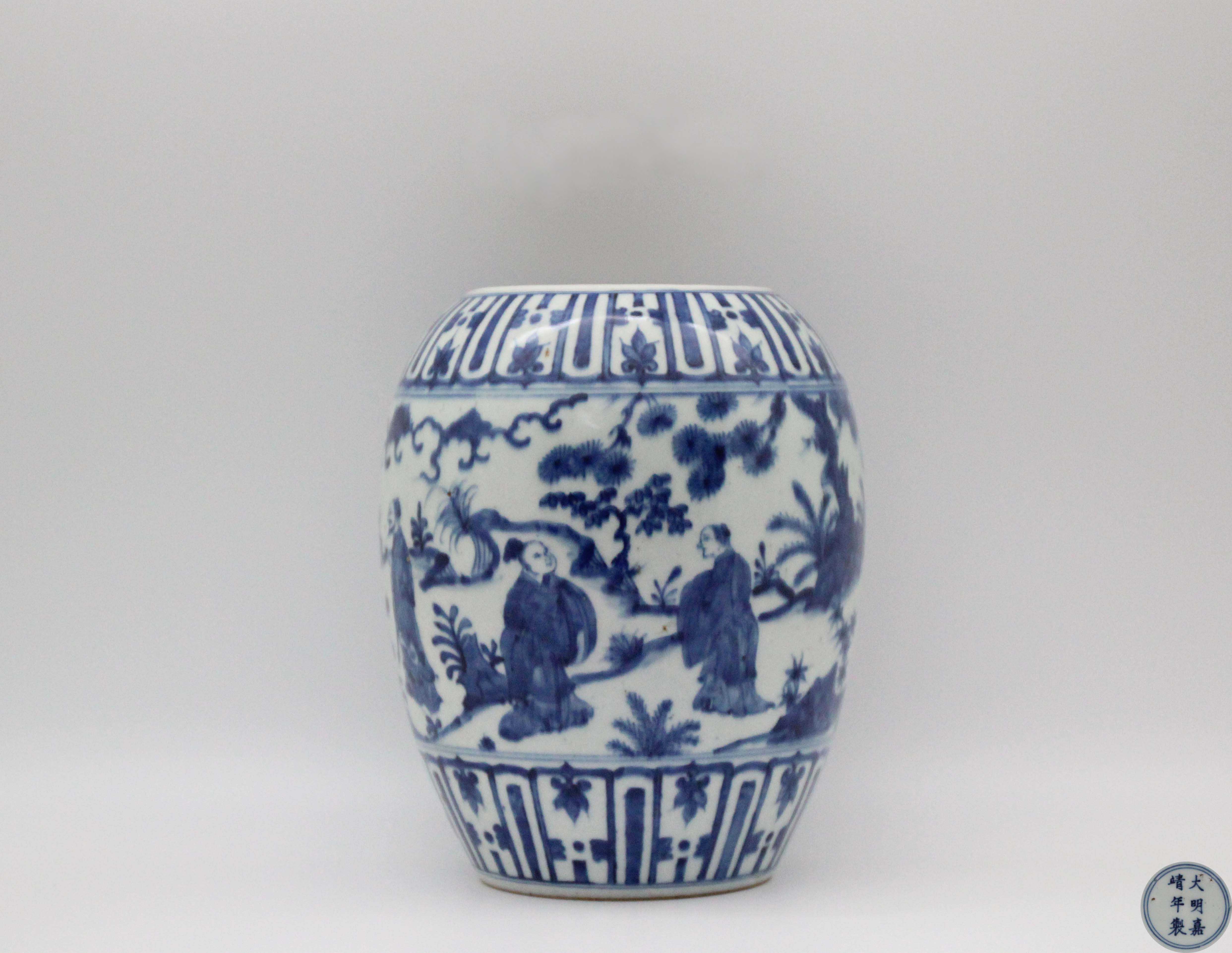 Lot1644 明嘉靖 青花人物故事罐
